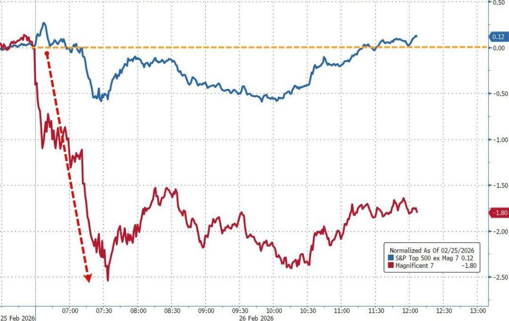 当天科技七巨头整体表现弱于标普500其余成份股,这种分化说明问题并非行业走弱,而是龙头过度集中后的自然调整。