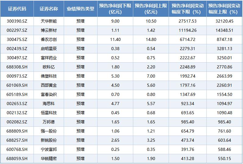 天华新能暂时登顶,最高预增超300倍