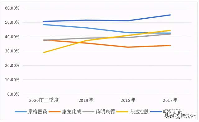 2017-2019年以及2020年前三季度分别为55.0%、51.0%、51.4%以及50.5%,稳定在50%以上。期间波动主要是由于股权摊销、成本增加及收购Biomere(非GLP服务,利润率相对低)所导致。