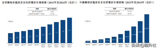 2015年,全球非临床安评市场规模从34亿美元增至2019年48亿美元,年复合增速为9.4%。预计2024年将增长至87亿美元,2019年至2024年的年复合增速为12.5%。